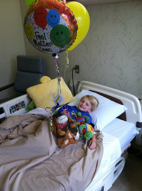 He had to get IV's, blood drawn, chest x-rays....ugh! This poor little guy was put through the ringer!! |